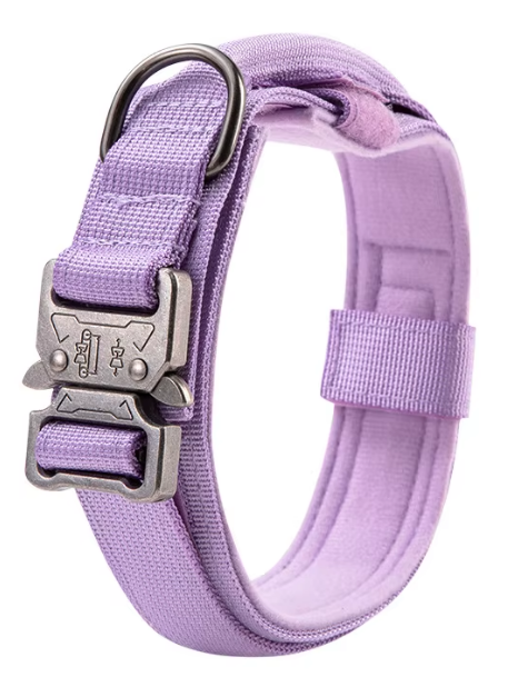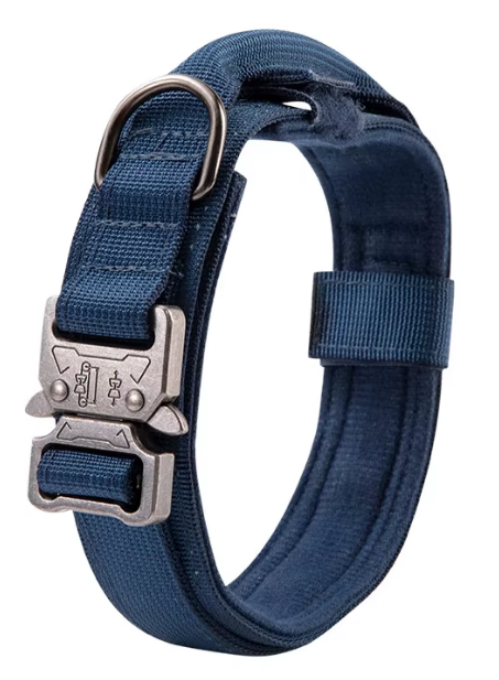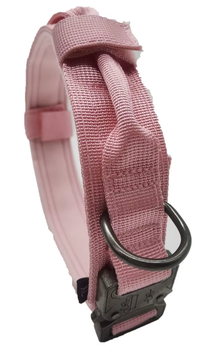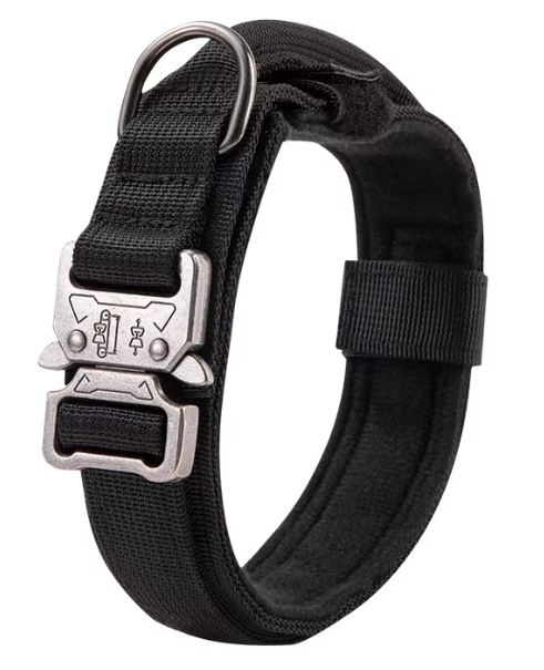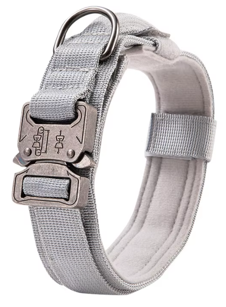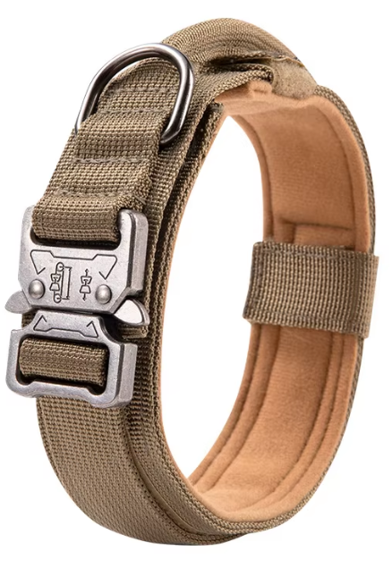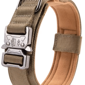 Este collar táctico combina un diseño robusto con componentes de alta calidad. Su estructura acolchada le da confort incluso en sesiones prolongadas, mientras que la hebulla metálica reforzada garantiza durabilidad. Además, incluye un asa de agarre para mayor control en momentos de entrenamiento o emergencias.